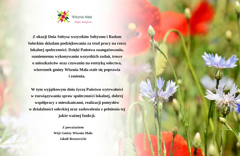 Z okazji dnia sołtysa składam wszystkim sołtyskom i sołtysom w naszym województwie serdeczne życzenia oraz wyrazy wdzięczności i szacunku za pracę i zaangażowanie.